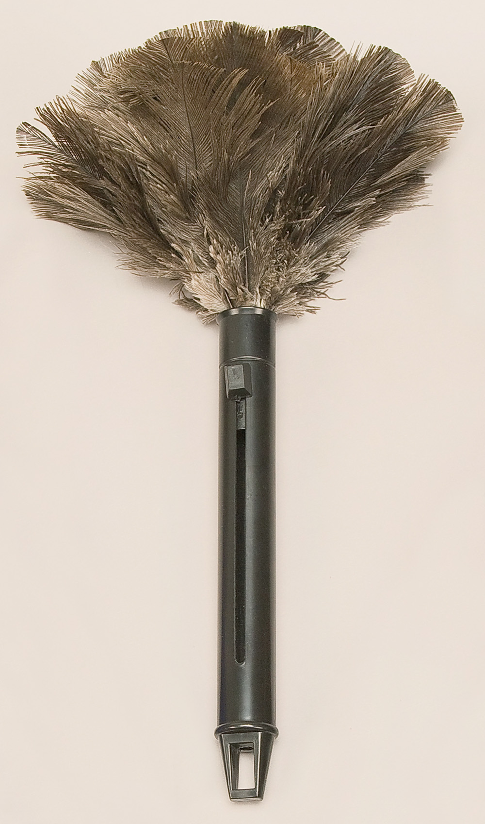 Straight, cylindrical handle, black.